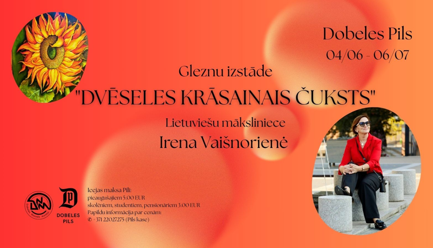 Izstāde Dobelē ir jau deviņpadsmitā. Man ļoti īpaša tāpēc, ka daļa bērnības pagāja Latvijā – šeit dzīvoja mani krustvecāki. Atmiņas par viņiem piepilda manu sirdi ar siltumu, un šī izstāde ir veltījums bērnības pasteļtoņiem, ar kuriem viņi iekrāsoja manus agrīnos gadus.