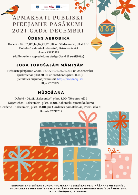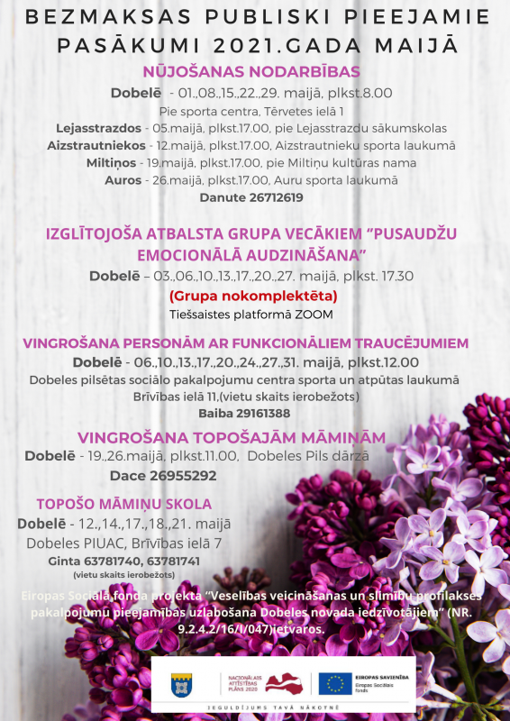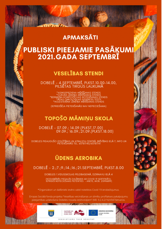Tuvākajā laikā paredzēts organizēt šādas bezmaksas aktivitātes Dobeles novada iedzīvotājiem: